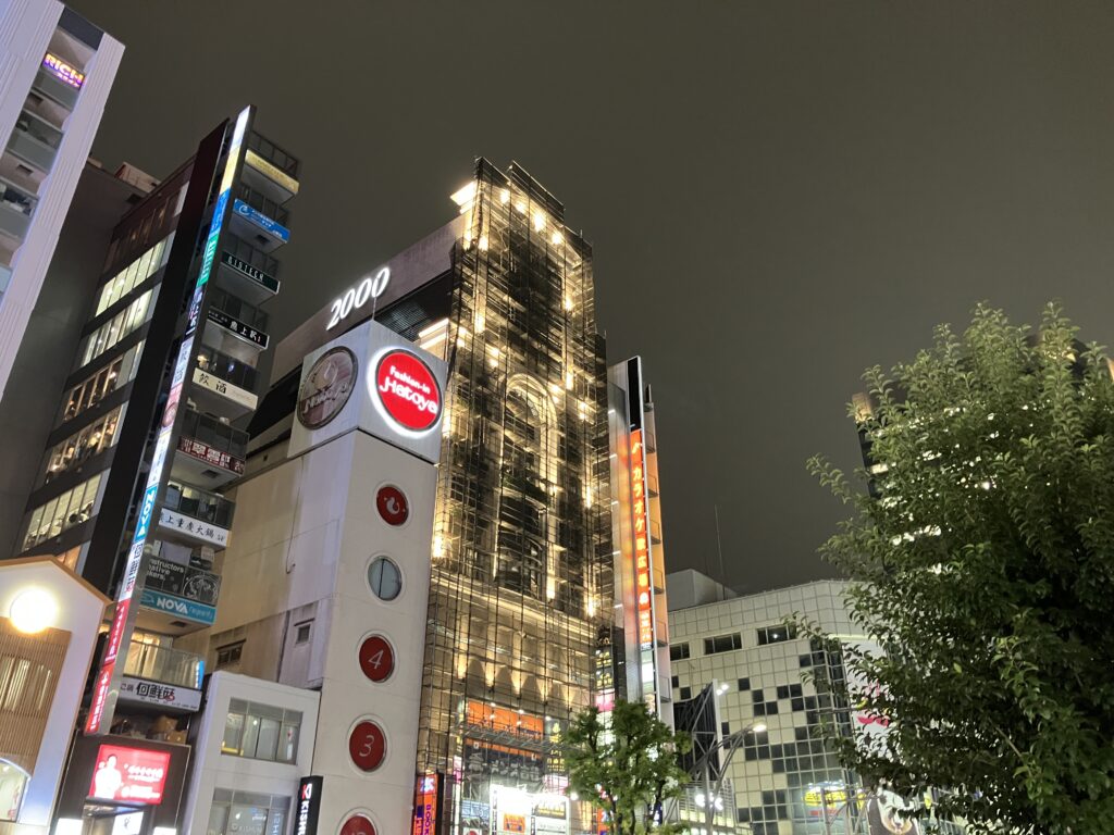BookOffさんのビルは囲いがとれましたが、足場だけが残っています。