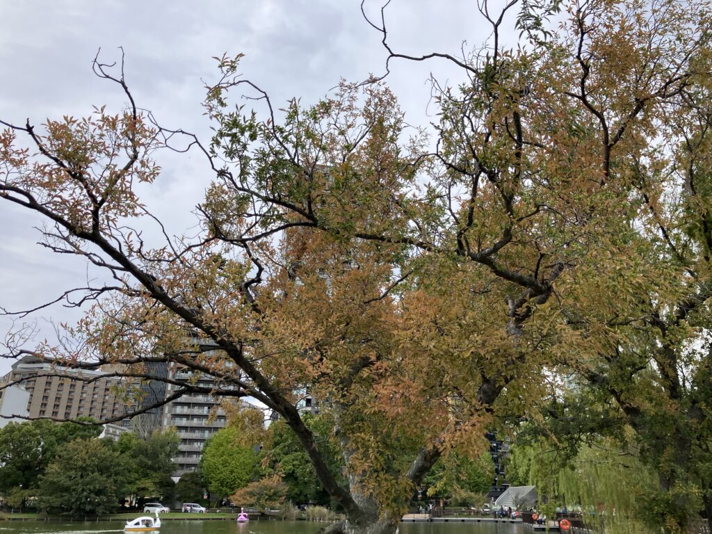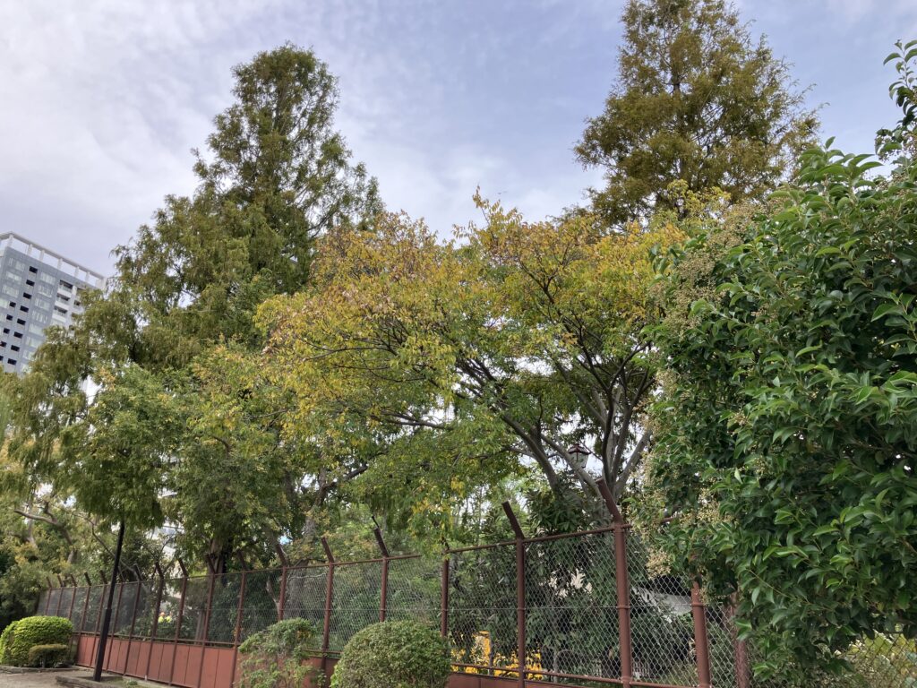 赤くなっている木もありますが、いちょうは緑ですね。